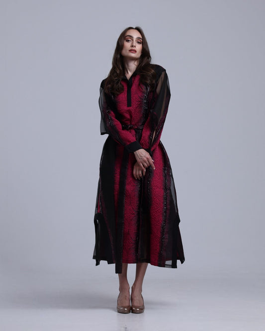 LA REINE - Black & Fuchsia Embossed Organza Midi Dress