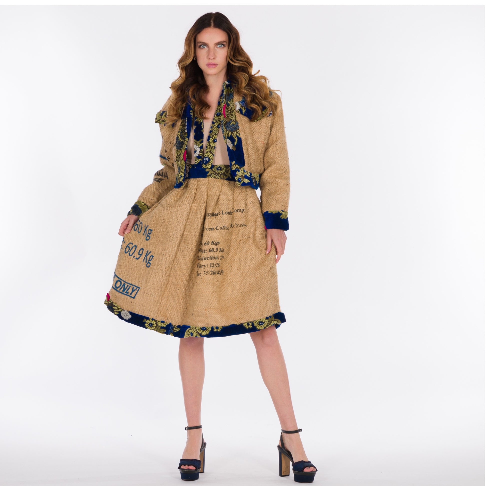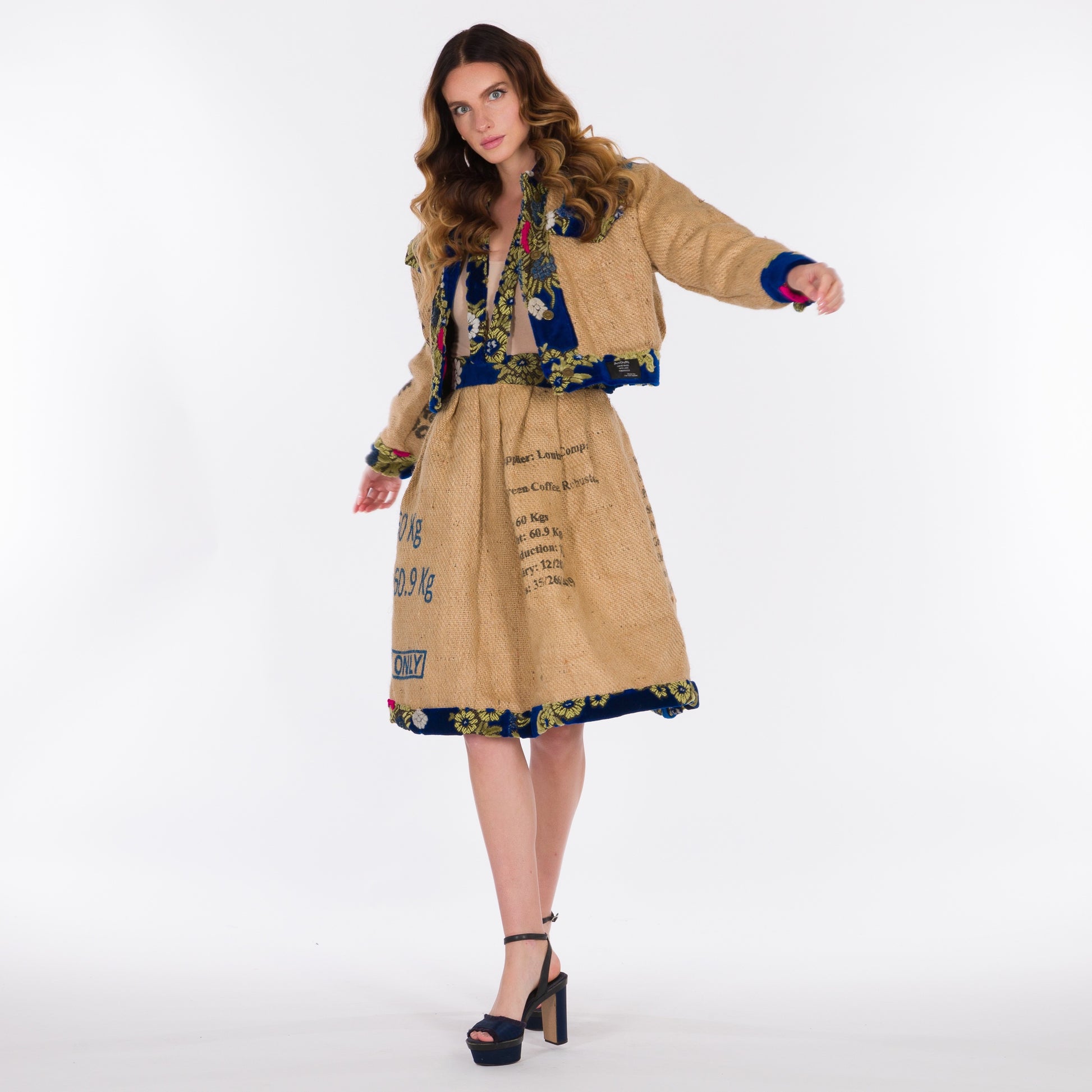 صُنع هذا الجاكيت الخفيف المقصوص من الخيش الأخضر، ويوفر ملاءمة مخصصة تناسب شكل الجسم. مثالي لأي مناسبة، فهو يجمع بين سحر الريف وجمال العصر الحديث. يمكنك ارتداؤه مع التنورة المطابقة لإطلالة كاملة.