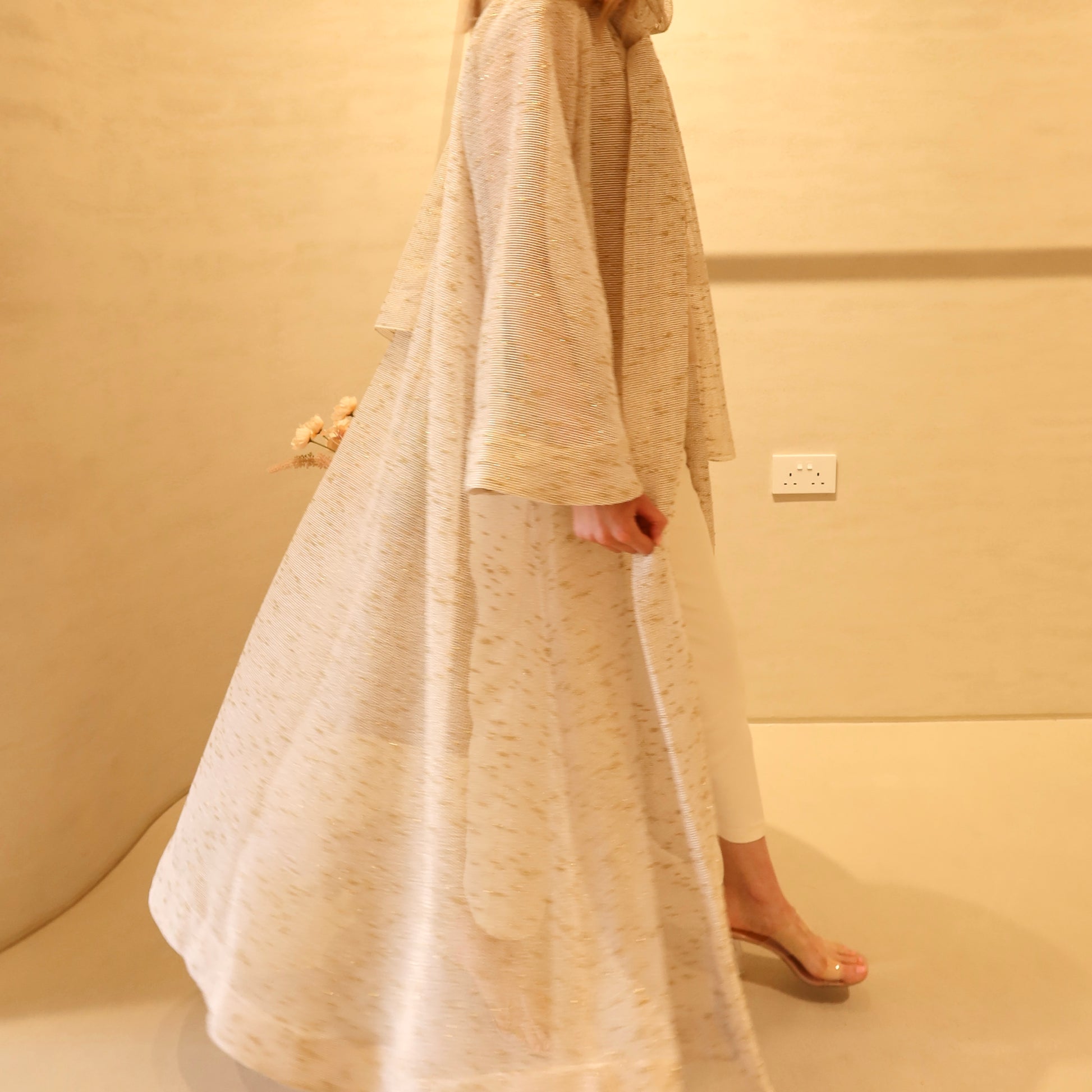 تجمع عباية شاين بين الأناقة والسحر العصري، مصنوعة من قماش شبكي خفيف الوزن بتصميم بسيط وأنيق. مثالية لمن يبحثن عن مظهر متعدد الاستخدامات ومتطور، ويبلغ طولها القياسي حوالي 147 سم.
