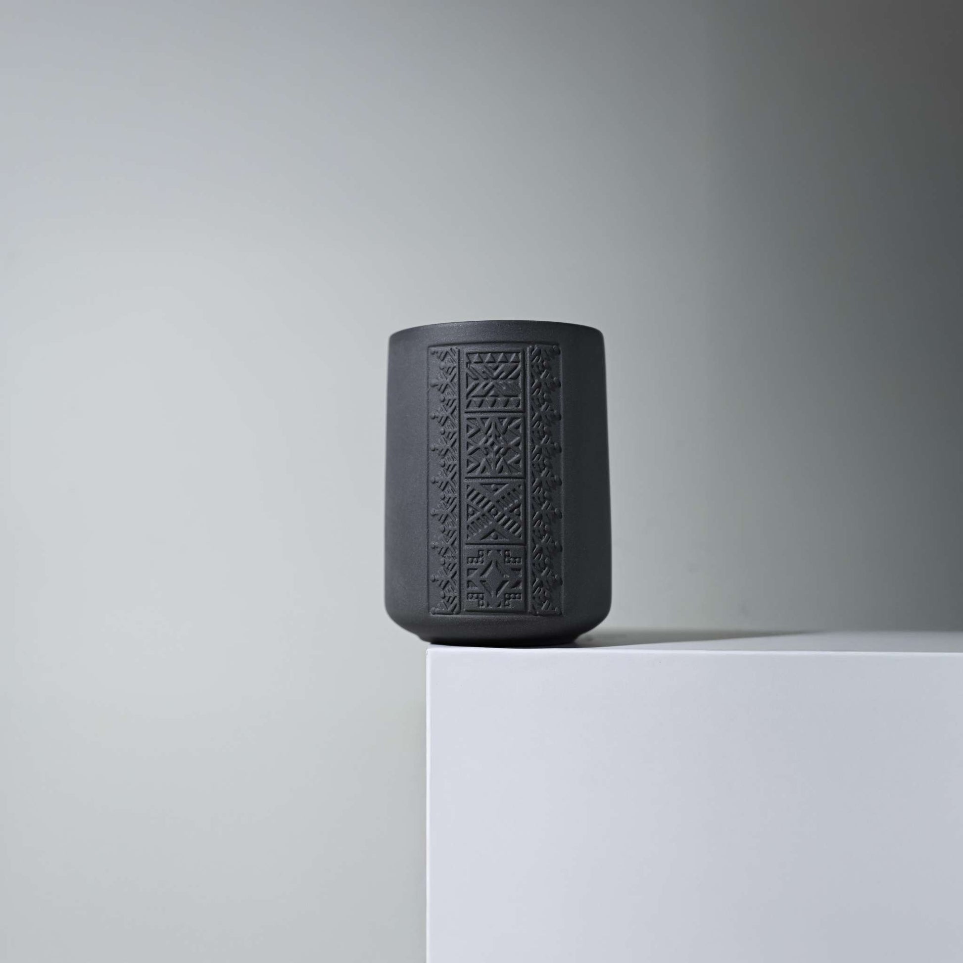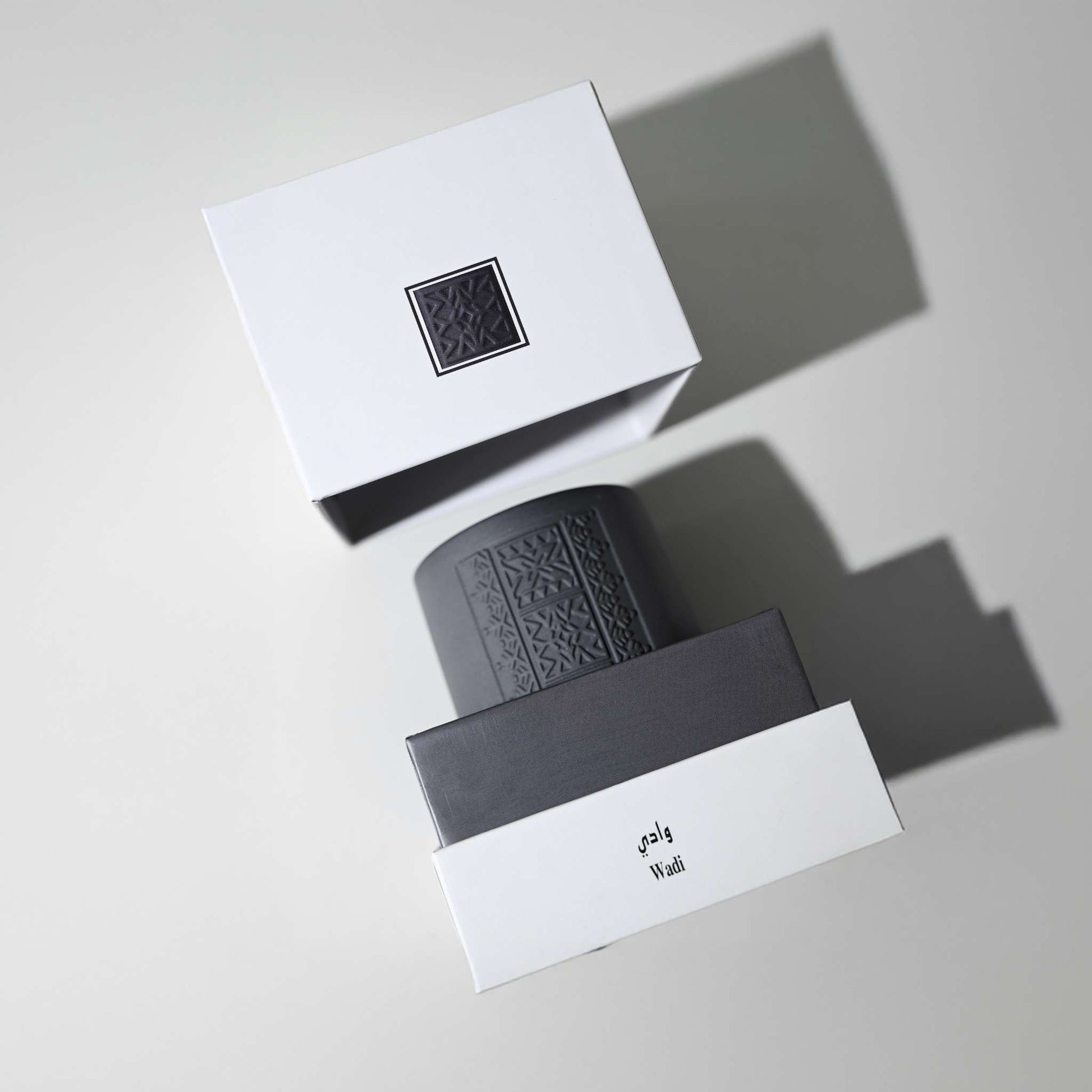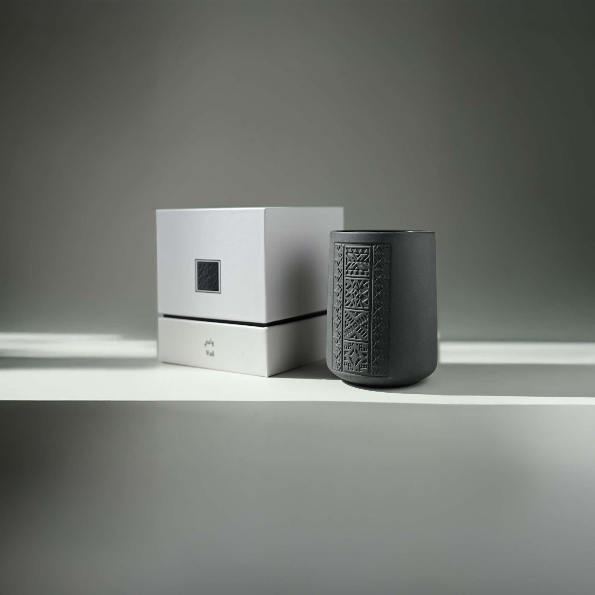 Handcrafted from porcelain and delicately engraved with the traditional Al-Qatt Al-Asiri pattern. Its form and color palette are inspired by the stones found in Asir’s valleys.