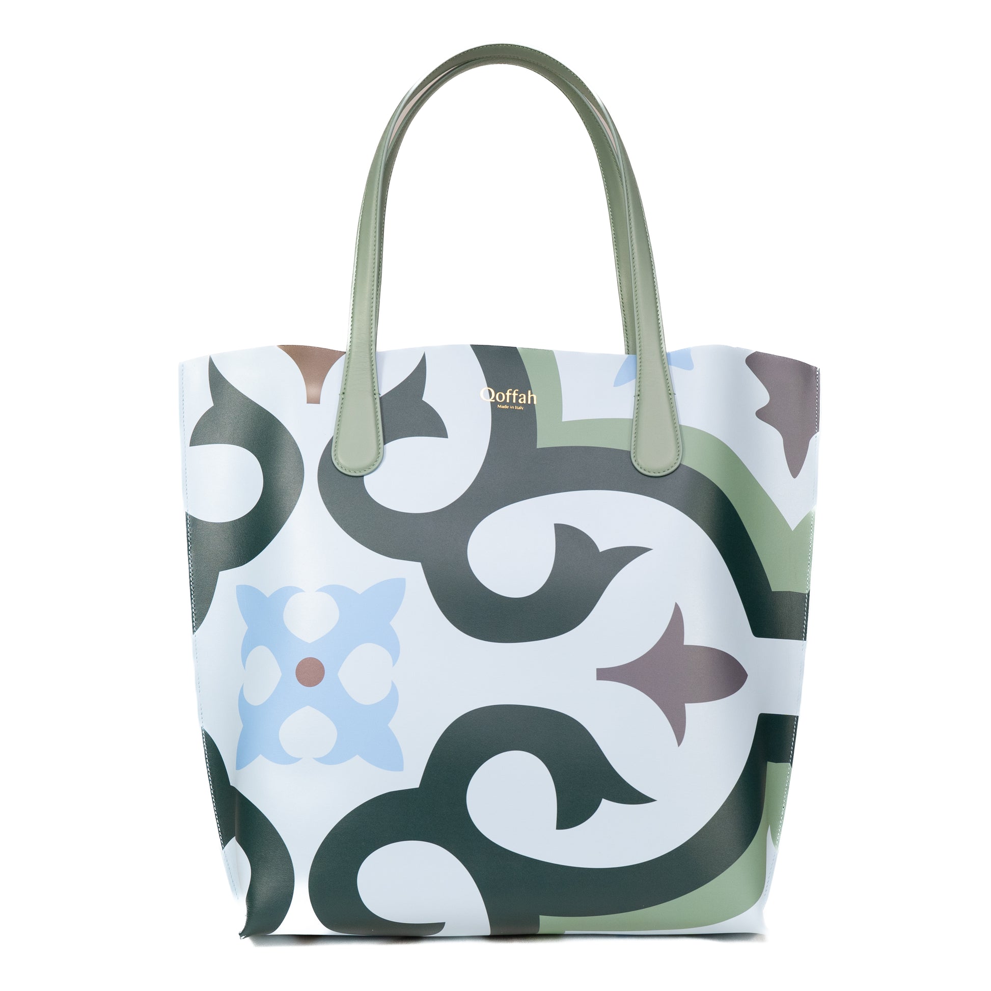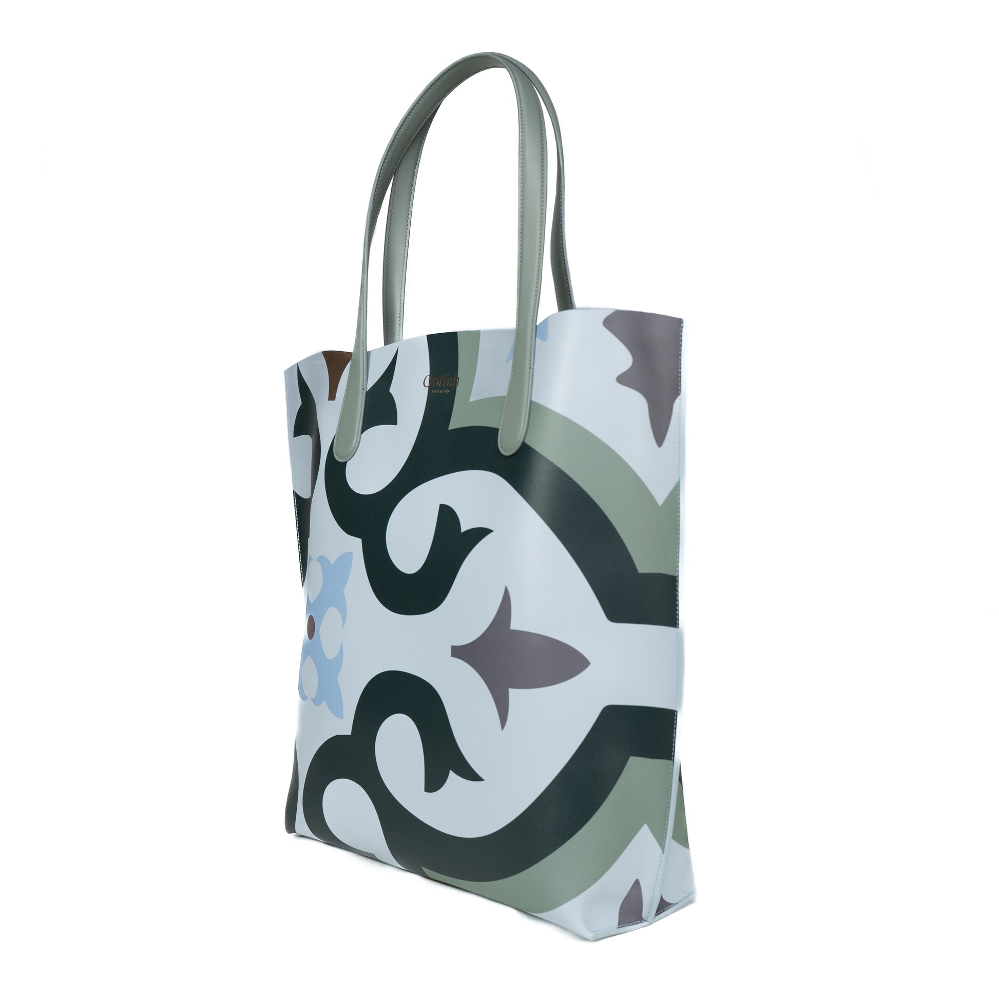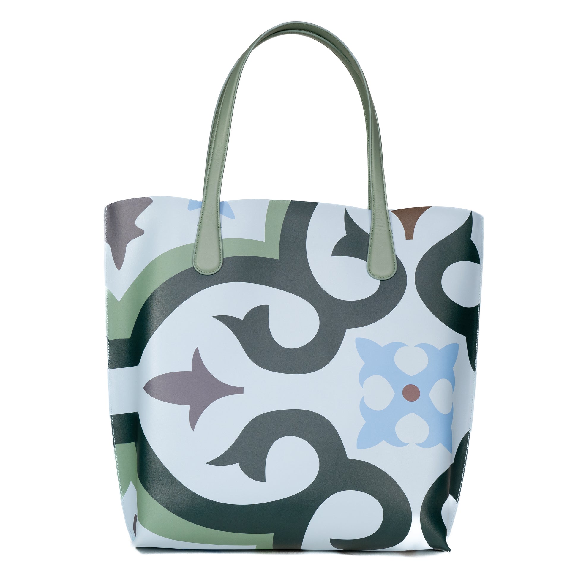 This tote serves as a heartfelt tribute to the mesmerizing mosaics adorning the landscapes of the Mediterranean countries. It pays homage to the intricate patterns and vibrant colors that capture the essence of the region's rich cultural tapestry. Each stitch and detail in the design reflects the beauty and diversity of these mosaics, symbolizing the journey of exploration and discovery.