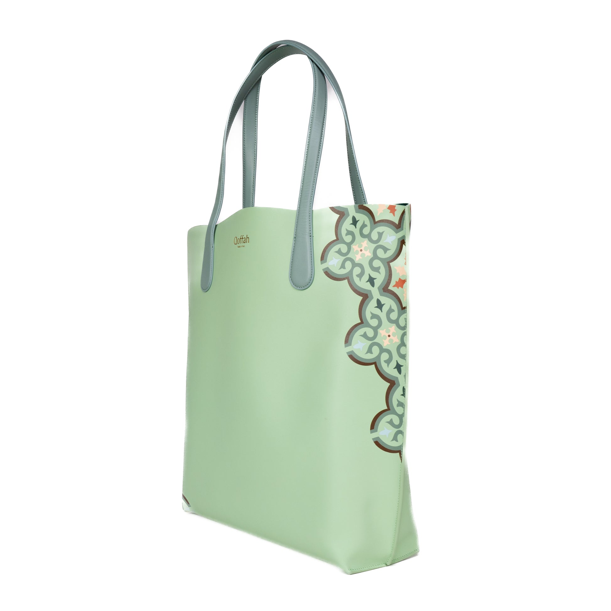 This tote serves as a heartfelt tribute to the mesmerizing mosaics adorning the landscapes of the Mediterranean countries. It pays homage to the intricate patterns and vibrant colors that capture the essence of the region's rich cultural tapestry. Each stitch and detail in the design reflects the beauty and diversity of these mosaics, symbolizing the journey of exploration and discovery.