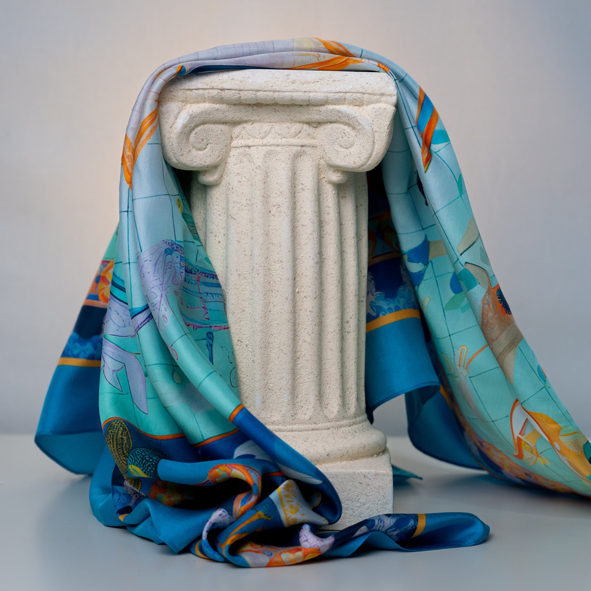With its intricate patterns and vibrant colors, the "La Cour des Miracles" scarf effortlessly infuses any outfit with an unmistakable Parisian flair, evoking the timeless elegance and allure of this iconic city. Whether draped casually over the shoulders or elegantly tied around the neck, this scarf is a versatile statement piece that exudes sophistication and charm.