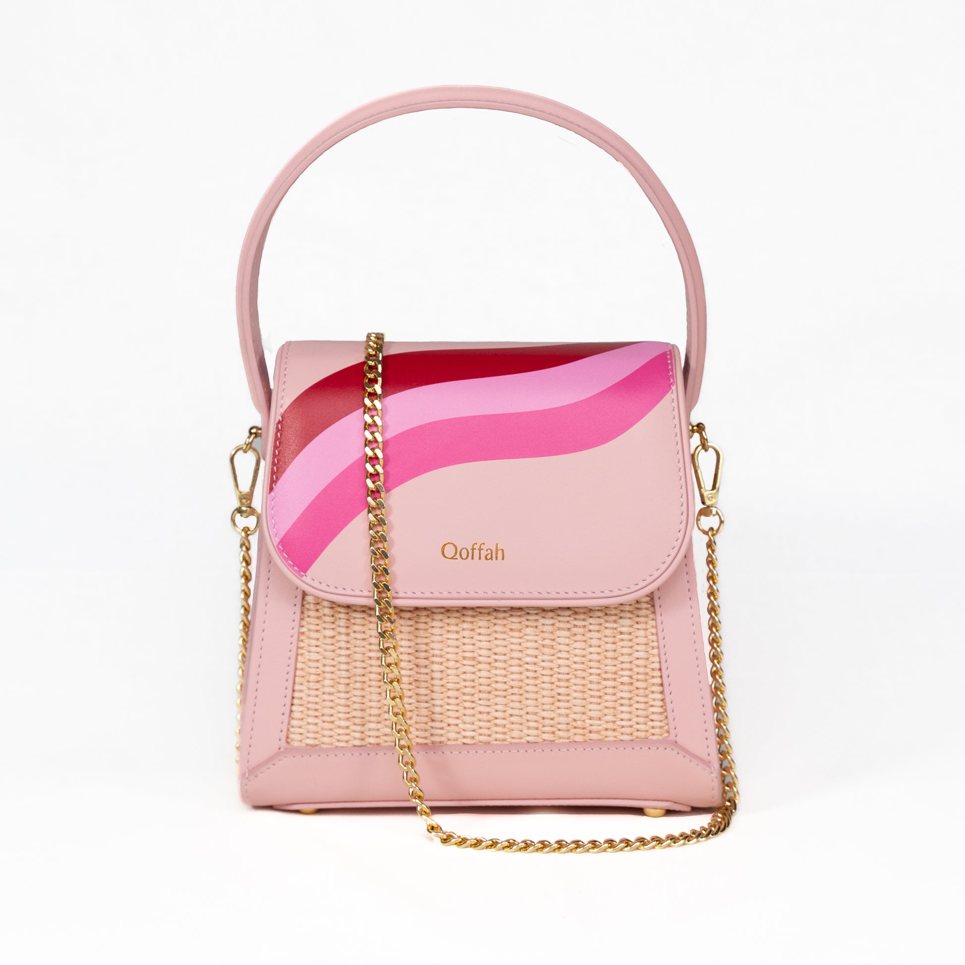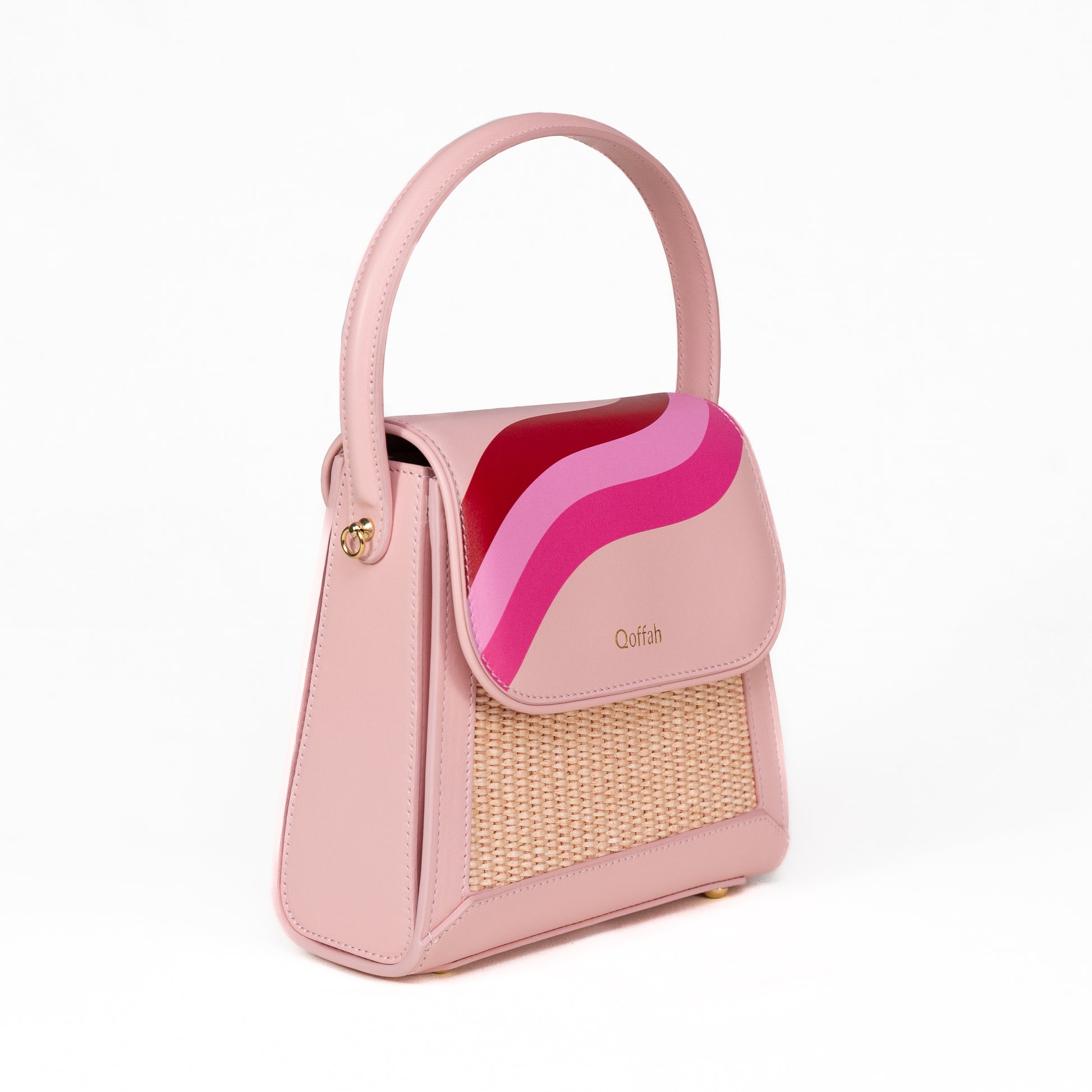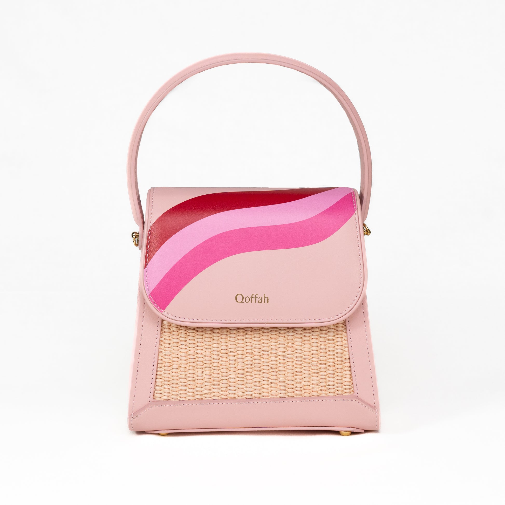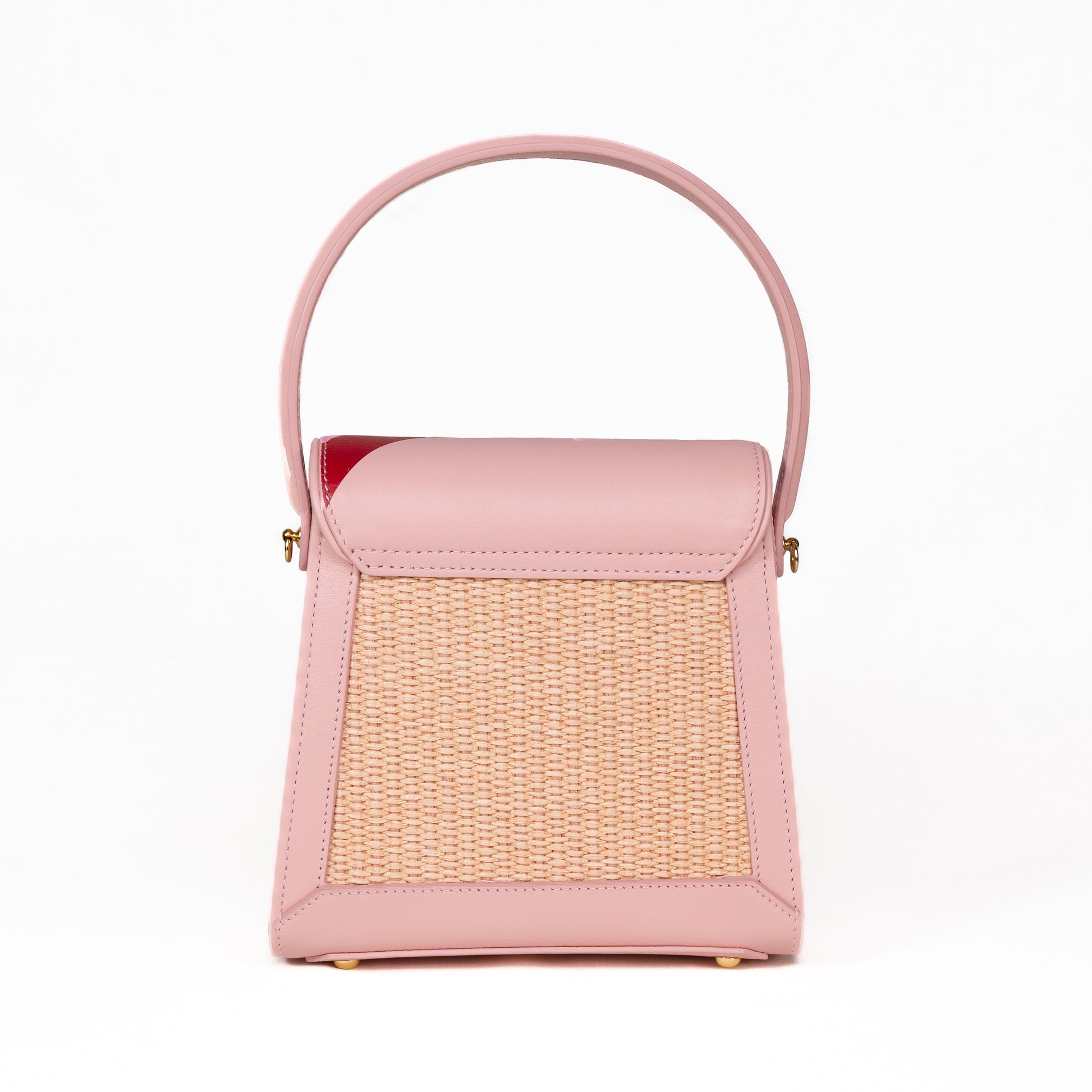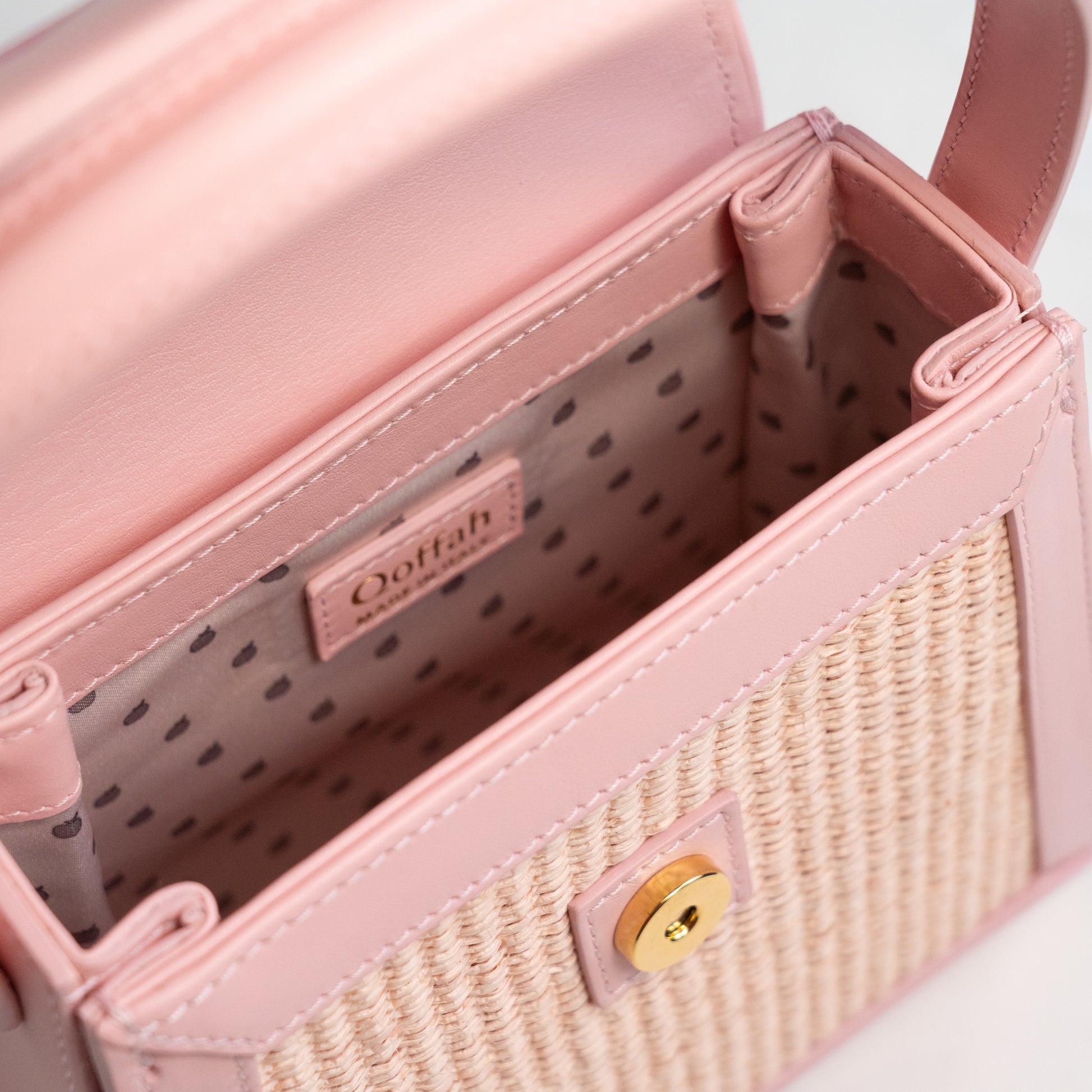 - Woven raffia front and back panel, from a factory using eco-friendly processes & products sourced in Italy.