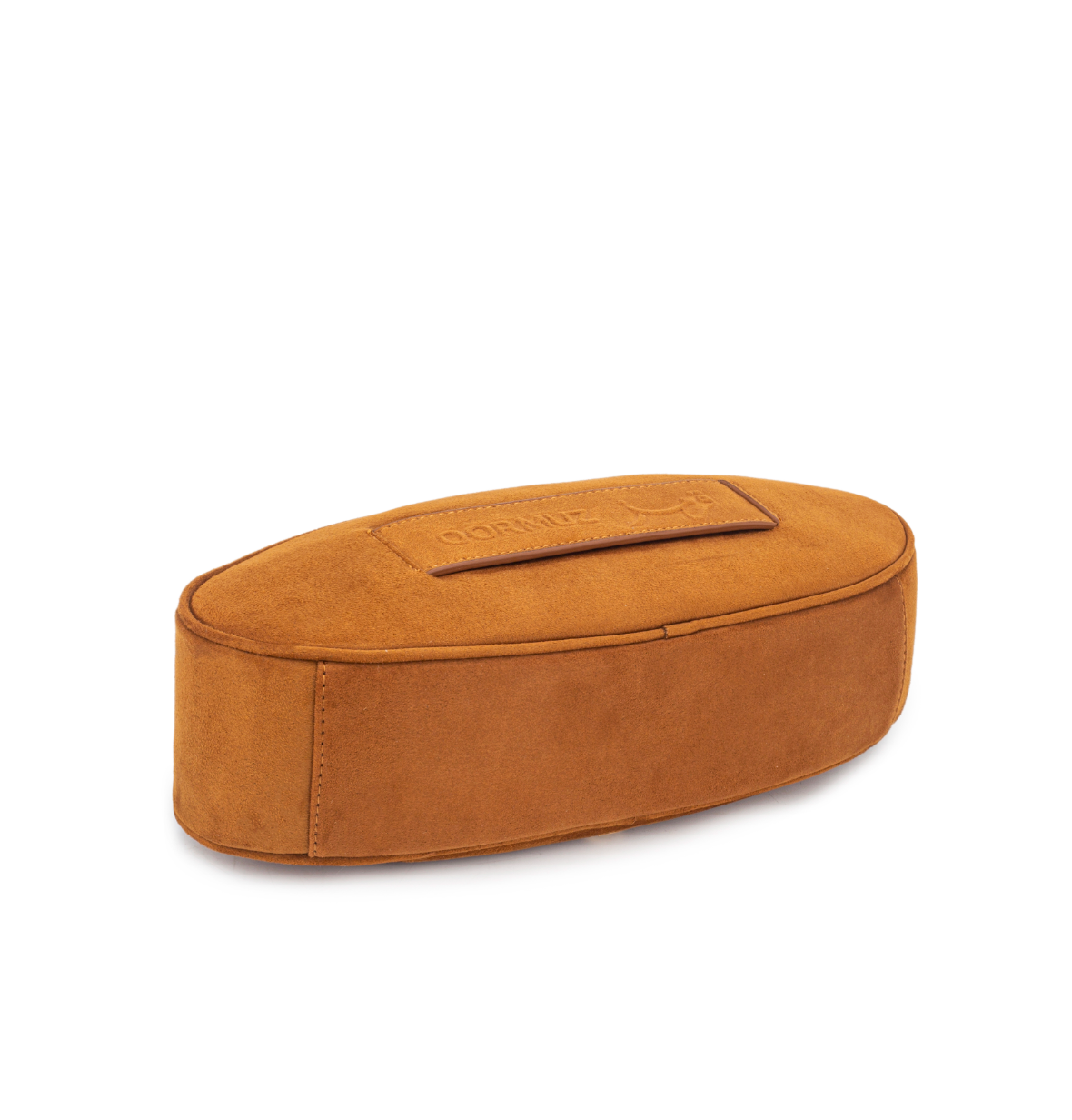 تتميز حقيبة قرمز المخملية بزخارف "بيدانا" الشهيرة الموجودة في شبه الجزيرة العربية، والتي تمثل التنوع البيئي والحب بتصميم سداسي. أبعاد الحقيبة: عمق 7 سم، عرض 30.3 سم، ارتفاع 12 سم.