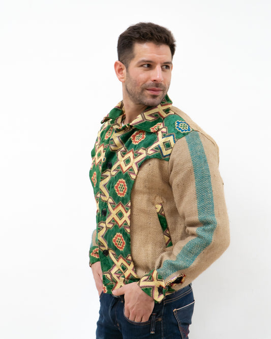 ANOURI - Unisex Brown & Yellow Burlap Jacket