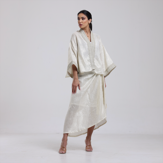 DALSH DESIGNS - Ivory Kimono Jacket and Midi Skirt Set