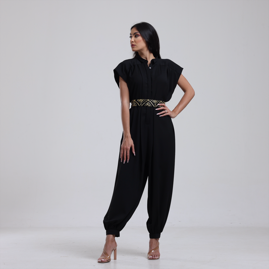 DALSH DESIGNS - Wide-Leg Jumpsuit with Sadu Wrap Belt