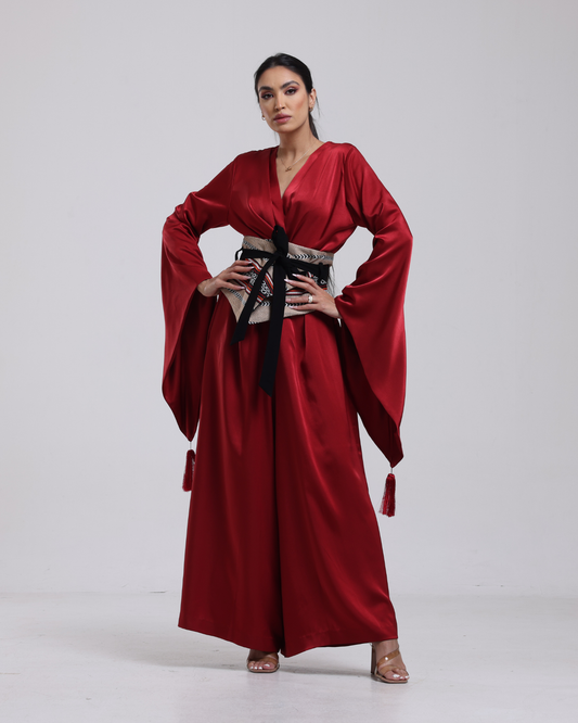 DALSH DESIGNS - Wide-Leg Jumpsuit with Sadu Wrap Belt