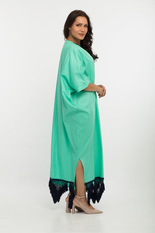 YARAKECH - Turquoise Batwing Kaftan & Turban Set