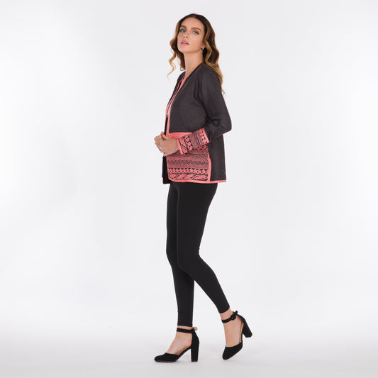 YARAKECH - Black Long-Line Jacket with Sfifa Embroidery