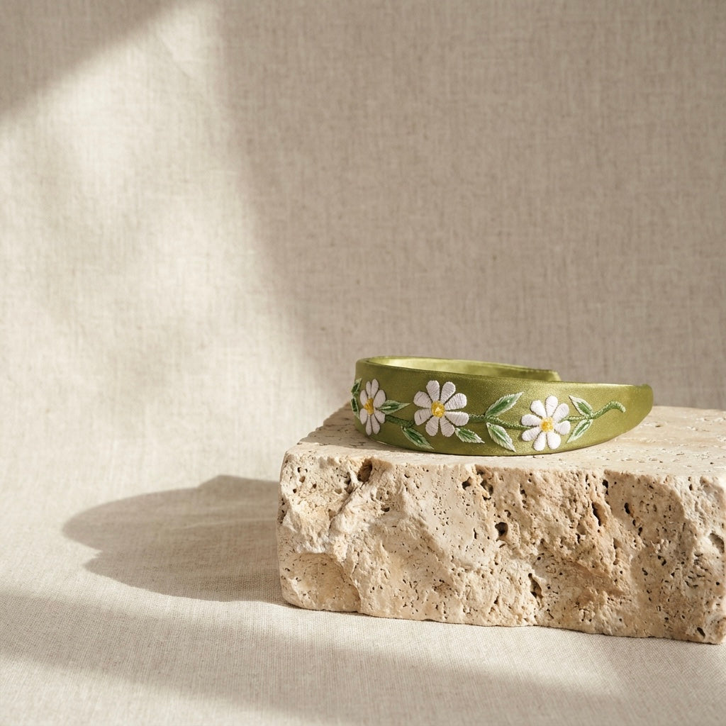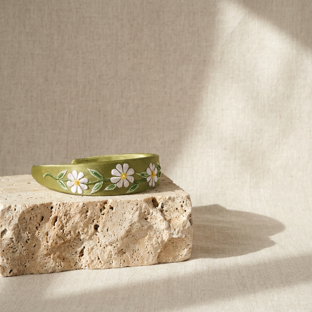 Inspired by the chamomile flower, widely found across Jordan, Palestine, Syria, Lebanon, and Morocco, this headband brings a soft elegance rooted in natural Arab beauty.