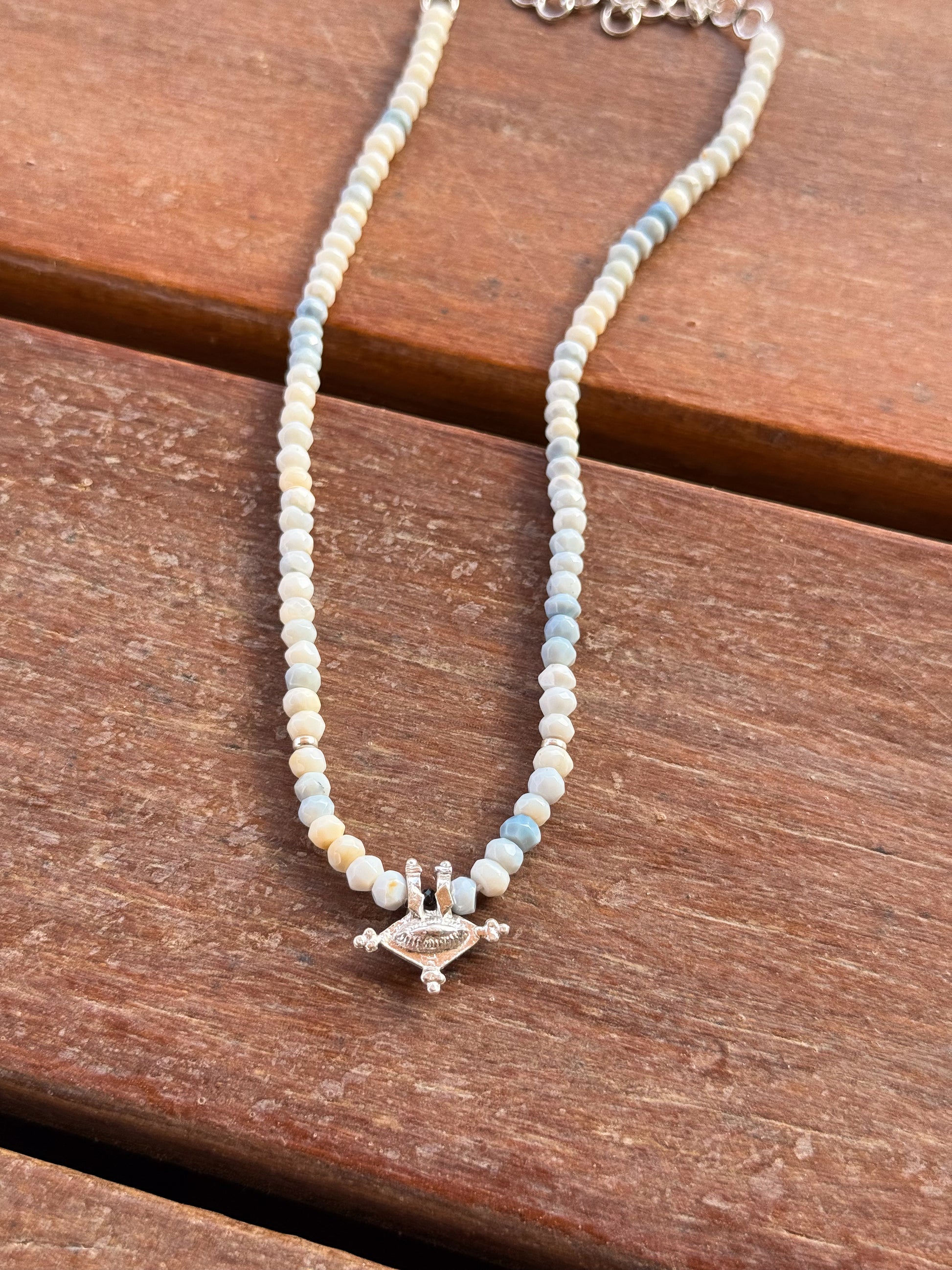 Materials: Sterling silver pendant and findings, stainless steel nylong wire and natural Blue Opals.