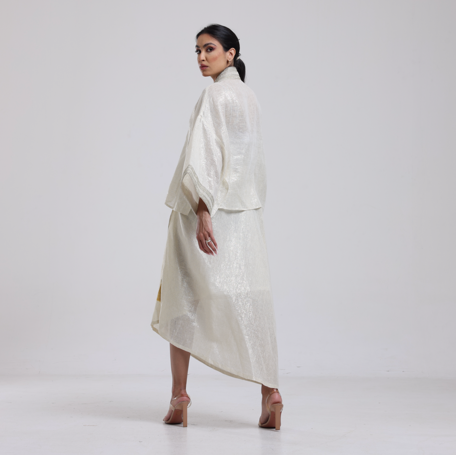DALSH DESIGNS - Ivory Kimono Jacket and Midi Skirt Set