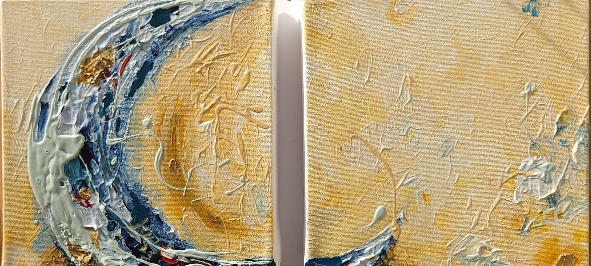 This delicate diptych was inspired by the artist’s larger Transcendence piece. The capture of light, choice of colours and the application of paint is unique to the artist’s impasto style and with elements from impressionists’ techniques.