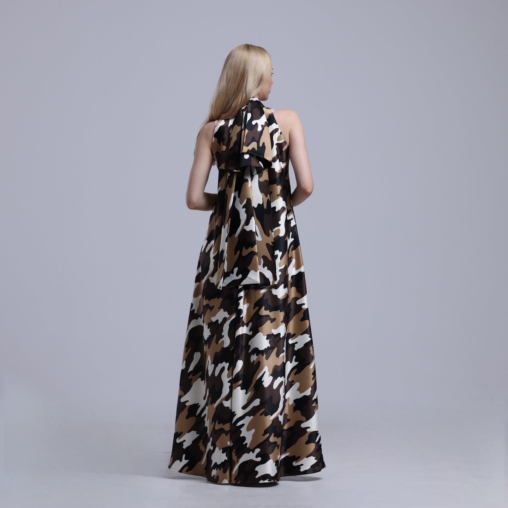 LA REINE - Camouflage Satin halterneck Maxi Dress