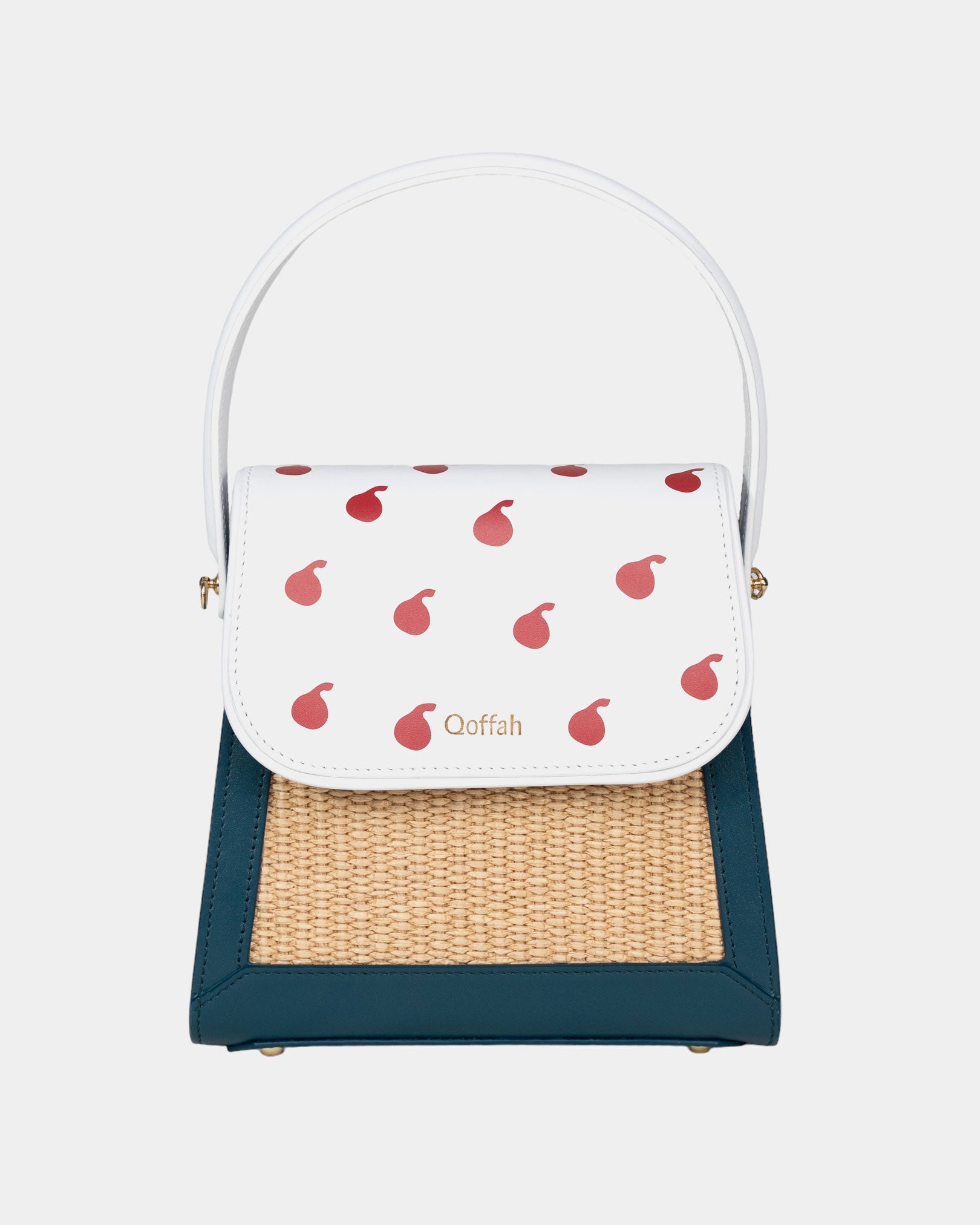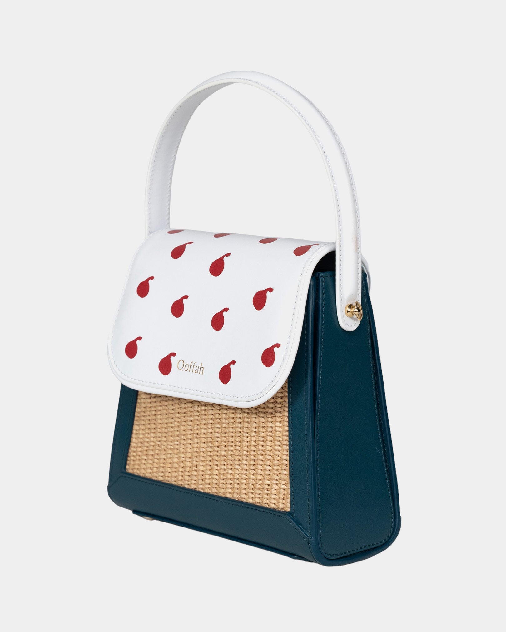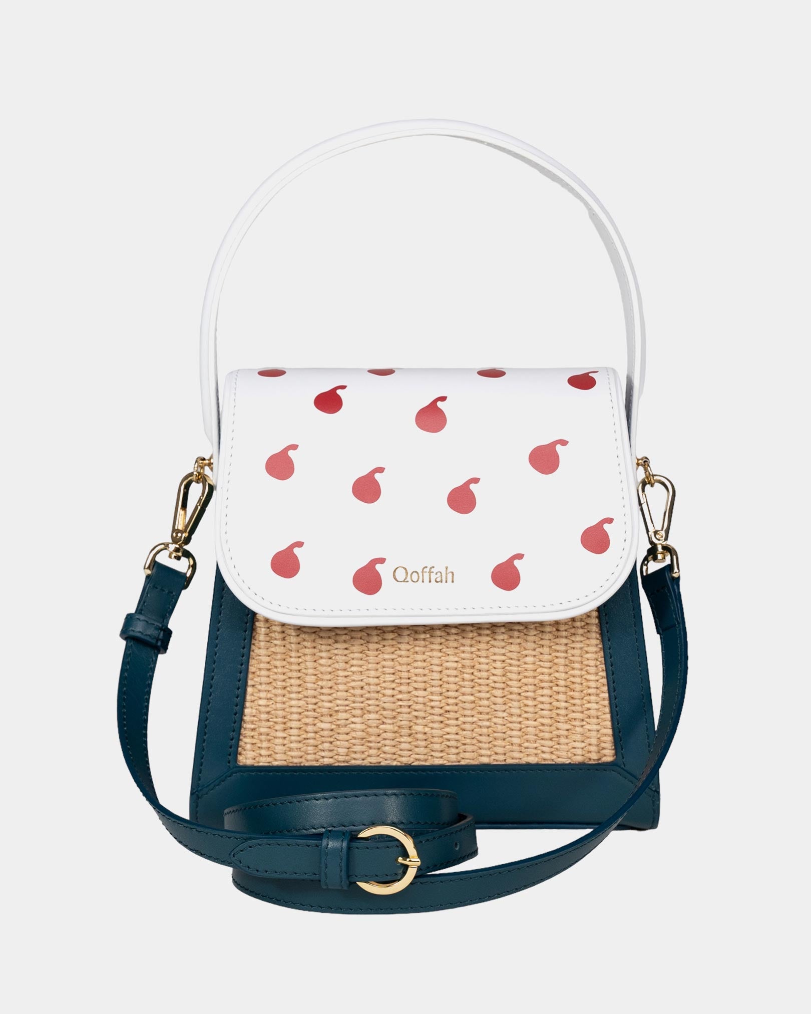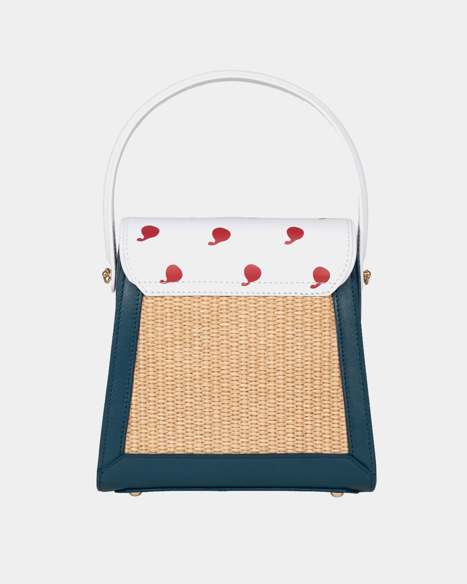 • Woven raffia front and back panel, from a factory using eco-friendly processes & products sourced in Italy