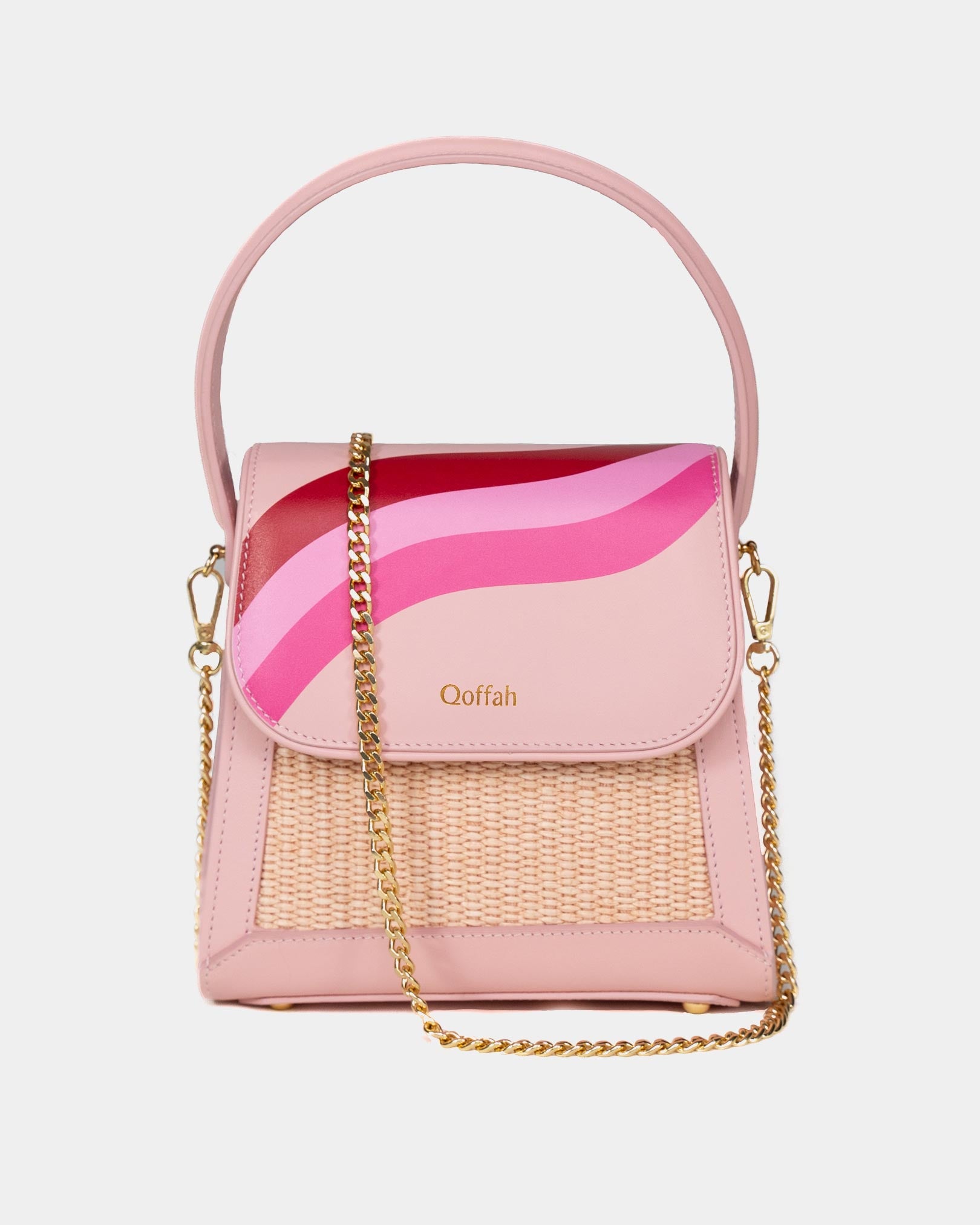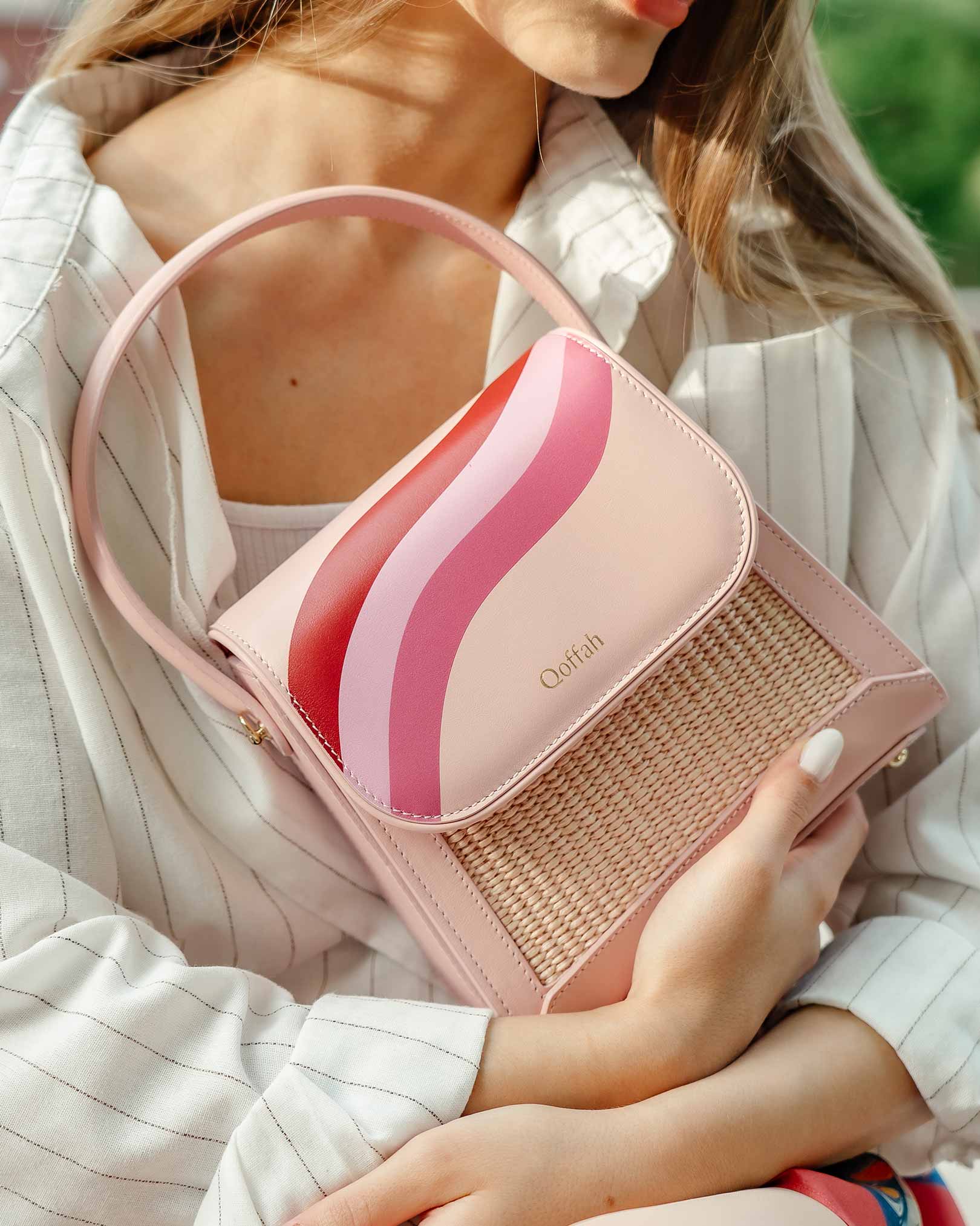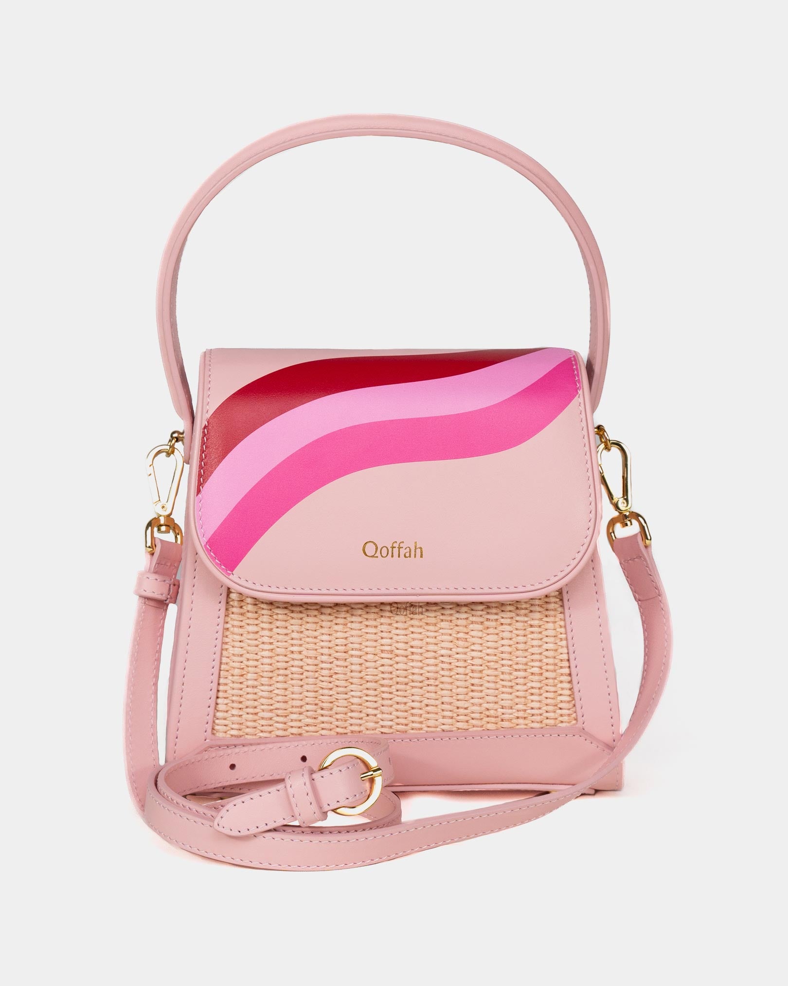 • Woven raffia front and back panel, from a factory using eco-friendly processes & products sourced in Italy