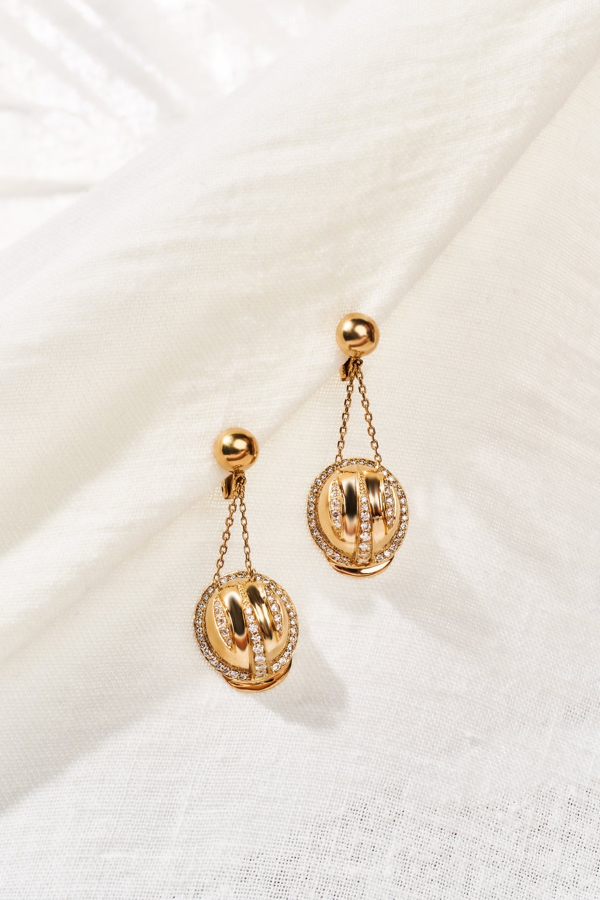Yellow gold earrings, 18 karats, with white diamonds.