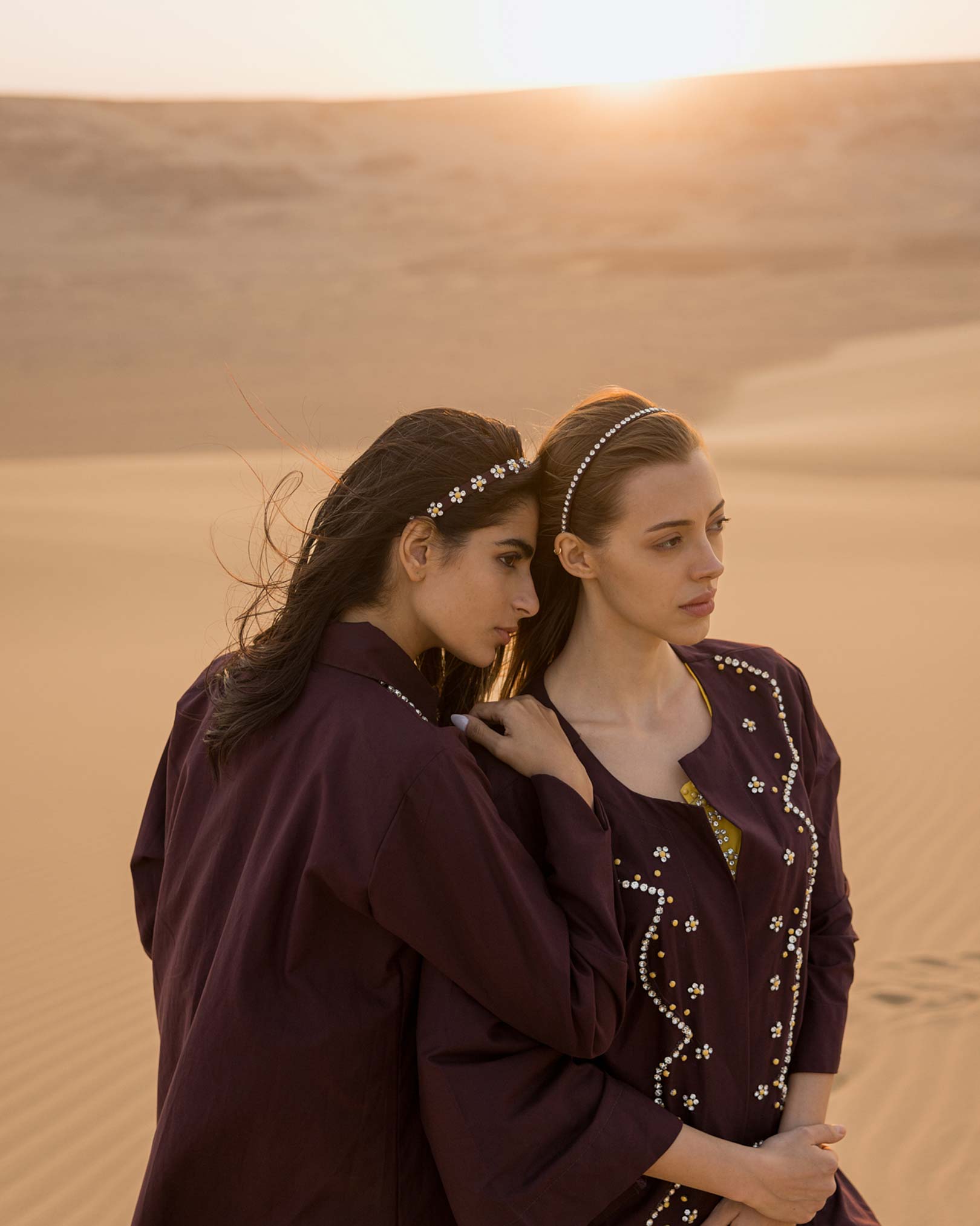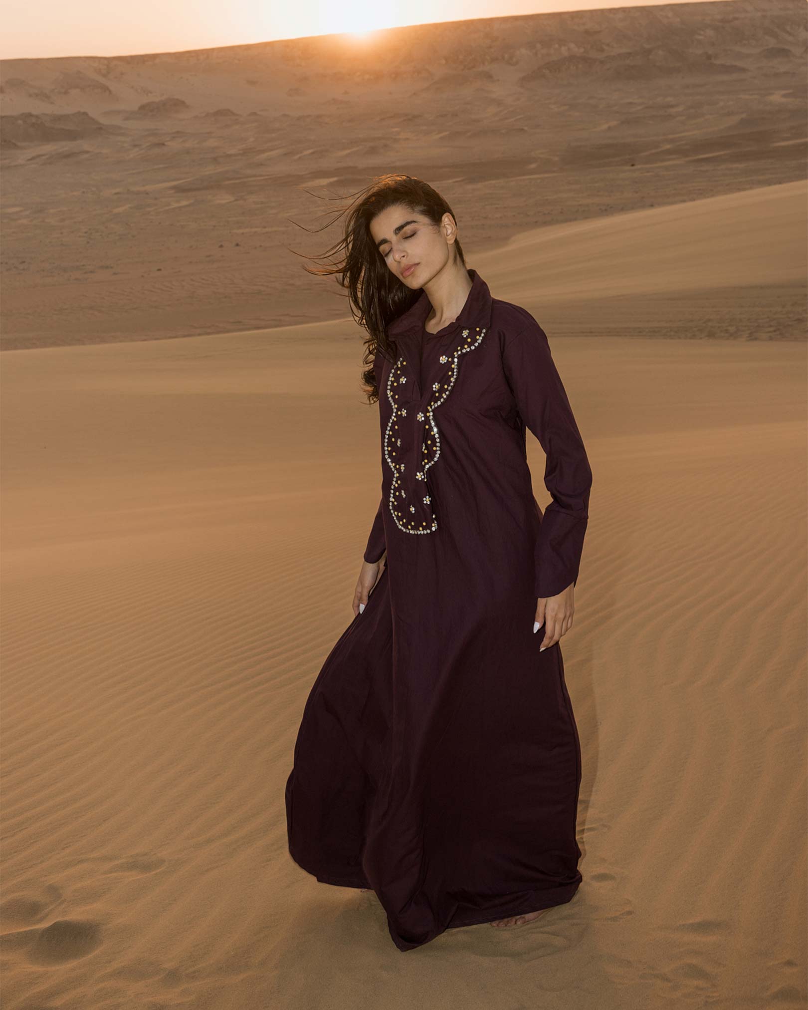 The Fiore Long Sleeve Kaftan exudes timeless elegance with its unique design and artisanal craftsmanship. Crafted from rich Egyptian Poplin cotton, this kaftan features long, flowing sleeves and a wavy flap at the front, beautifully adorned with hand-embroidered yellow studs and rhinestones in delicate floral patterns. The long sleeves add a touch of sophistication while maintaining a graceful, fluid silhouette. Ideal for any occasion, this kaftan effortlessly blends modern style with classic, intricate detailing.